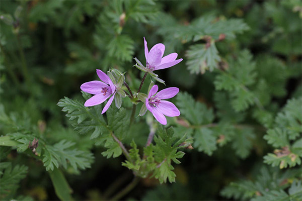 Dades interessants: La cigonya comuna és sovint confosa amb els geranis Robert. Però, malgrat algunes similituds externes, aquestes dues espècies de plantes són diferents: el gerani té un aroma brillant desagradable i fulles més grans en comparació amb la grua.