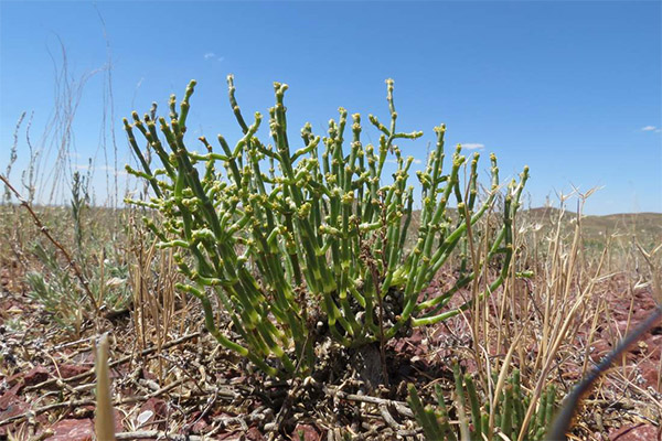 - L’anabàsia és un pantà salat. Es tracta d’una petita planta amb tiges. En alçada poques vegades supera els 25-30 cm.Les branques són llenyoses, cada any apareixen brots anuals que es moren a finals de tardor. Les fulles inferiors estan ben desenvolupades, però la seva mida no supera els 5 mm. Les mitjanes es desenvolupen una mica pitjor, les superiors estan subdesenvolupades. Les flors d’aquest anabàsic són de mida petita, recollides en inflorescències en forma d’espiga. Els fruits creixen a la part superior de la planta, tenen una forma arrodonida i lleugerament oblonga. Contenen molt líquid de color vermell brillant. En bona part, aquesta espècie és comuna a l'Àsia central, però es pot trobar al Caucas, a la part occidental de la Federació Russa i a l'oest de Sibèria.