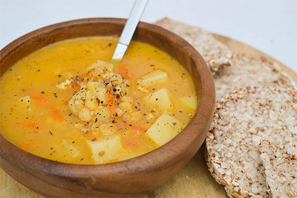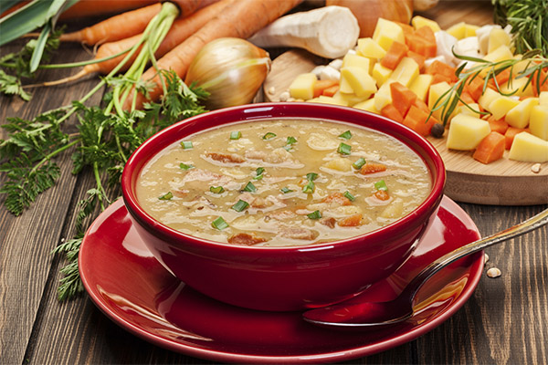Podeu tractar la vostra mascota només amb una petita porció d’una variació dietètica especial del plat. Es prepara en components com: aigua, pastanagues, pèsols, arrel d'api. Les matèries primeres s’han d’aprofundir abans d’enviar-les a la cassola. La sopa ha de ser força fina.