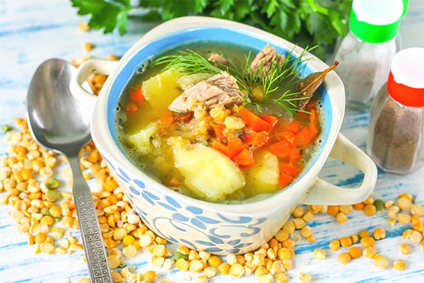 La sopa es considera un producte baix en calories que millora el metabolisme. És valuós per a tothom que vulgui desfer-se ràpidament del pes corporal no desitjat. La sopa de pèsols ajuda a eliminar les toxines del cos, alleuja la inflor i neteja els intestins de les acumulacions de femta.