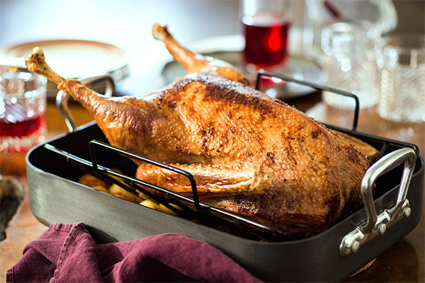 L’oca sense farciment es pot cuinar sobre un bastidor de filferro. Si està farcit, podeu utilitzar l’oca o la panera.