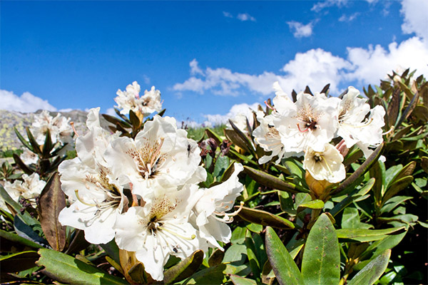 Per a cada problema, els curanderos amb l'ajuda del rododendro troben la seva solució: per exemple, es recomana el te com a mitjà per alleujar els refredats i reforçar el cos. Amb el mateix propòsit, s’aconsella la mel de rododendre. La tintura d’alcohol en petites quantitats es prescriu per a taquicàrdia i escassetat de respiració, una decocció de les fulles redueix la pressió arterial alta, s’utilitza per a doblar per problemes femenins, en particular, per a l’erosió cervical, així com per a malalties masculines com la prostatitis.