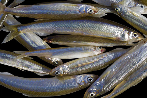 El peix conté vitamina D i greixos insaturats, aquest complex té un efecte positiu sobre la condició dels ossos. Tenint en compte aquest fet, el producte és extremadament útil per a nens petits, dones durant l’embaràs i gent gran. A més, aquestes substàncies reforcen l’esmalt dental i eliminen el sagnat de genives.