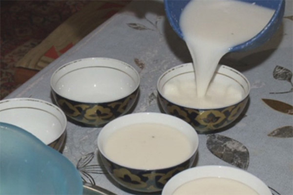 - Koumiss donen - agre, que ja conté un gran nombre de voltes d'alcohol. A punt per menjar després de 3 dies de fermentació.