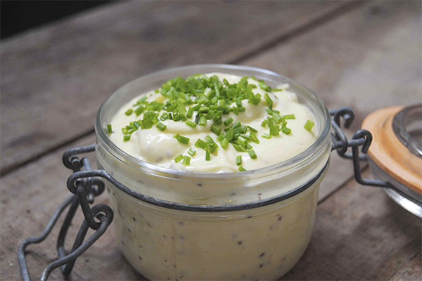 Millor agafar només el rovell. Es separa acuradament de la proteïna i es tritura amb sal, sucre i dues culleradetes de mostassa. A continuació, s’afegeixen 250 g d’oli vegetal en porcions petites. Quan la massa està prou batuda i té una consistència uniforme, s’afegeix una culleradeta de vinagre, es torna a batre tot. La salsa està a punt.