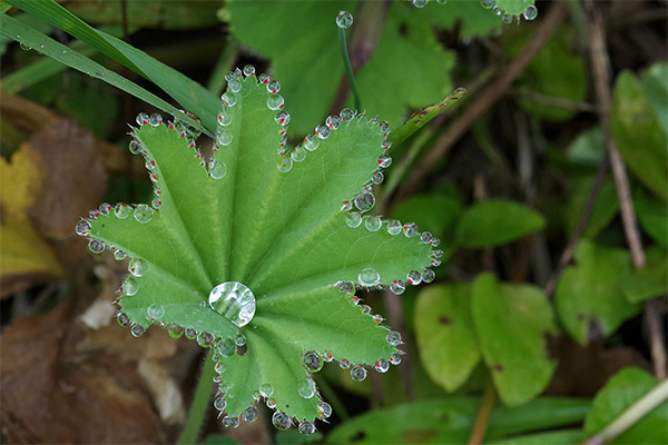 - El nom rus d’aquesta herba, que s’utilitza activament avui en dia, va sorgir per la similitud de les fulles d’aquesta planta amb uns exuberants punys d’encaix, de moda al segle galant. Però a Anglaterra i Alemanya, la gent veia en la seva forma similituds amb el mantell de la Mare de Déu, d’aquí el nom de “mantell de la dama”. A gairebé tots els països de l’Europa occidental s’atribuïen propietats màgiques a aquesta herba. Per exemple, es creia que la rosada recollida a les fulles ajuda a restaurar la joventut, i també elimina l’acne, les pigues i les taques d’edat.