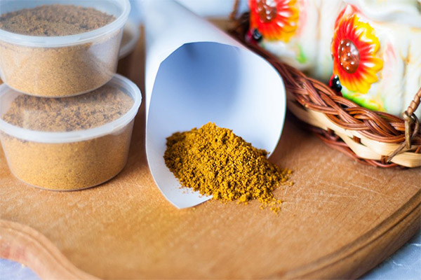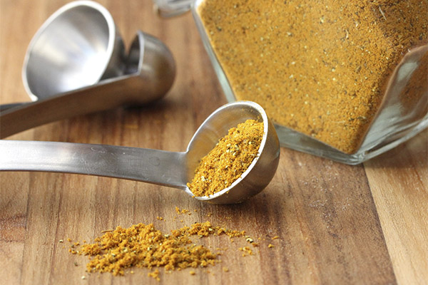 El curri condiment és ric en calories: 340 kcal per 100 g de producte.Però, com que s’utilitza en petites quantitats, no hauríeu de preocupar-vos especialment pel contingut de calories. El condiment és ideal per a la carn, l’arròs, la pasta i les verdures. És un excel·lent substitut de la sal durant la pèrdua de pes, ja que no reté aigua al cos.