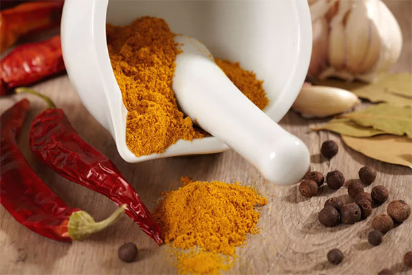 - Enfortiment de la immunitat. Una barreja de pebre i cúrcuma és un excel·lent mitjà per mantenir la immunitat. Contenen una gran quantitat d’antioxidants i vitamines A, C i B6, que estimulen i donen energia a les cèl·lules del cos per combatre malalties. El consum regular d’espècies ajuda a combatre molts bacteris patògens i reforça el sistema immune. El curry també prevé els refredats i alleuja els seus símptomes.
