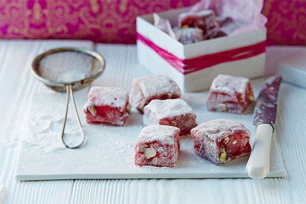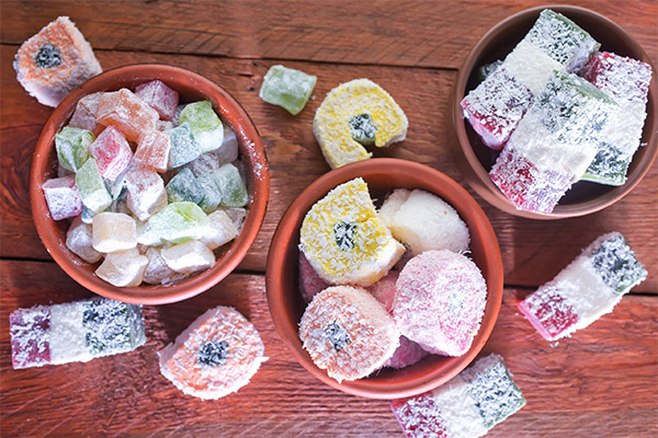 El fet que la delícia turca sigui molt rica en calories no el converteix en un producte perjudicial. Omplir-lo amb glucosa, fins i tot és beneficiós per al cos.