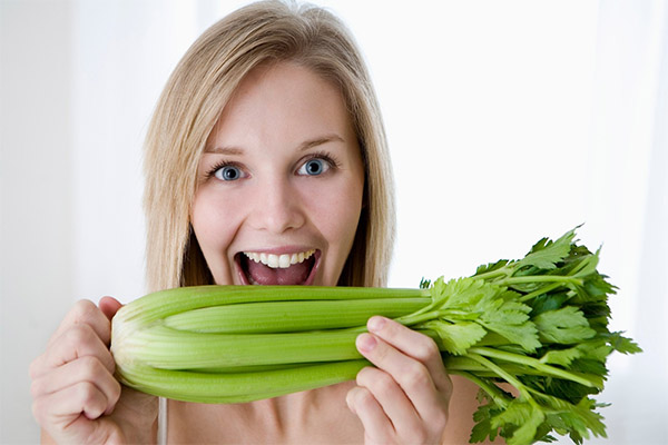 - Té un contingut calòric negatiu, és a dir, el cos gasta molta més energia en la digestió de fibra dietètica continguda en l’api del que conté la verdura en si mateixa, de manera que la inclusió del producte a la dieta permet mantenir una figura esvelta, important per a totes les dones.