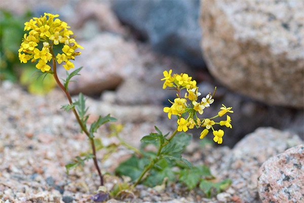 - Kamennaya es diferencia dels seus parents en un creixement reduït: només 20-30 cm i una floració lleugerament posterior, que comença al juny i dura fins a octubre. És aquest tipus de colza com el més decoratiu que es pot observar als jardins: alguns jardiners l’utilitzen com a planta de fons.