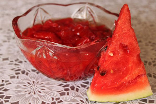 Una manera per a aquells que no es poden permetre el luxe de cuinar un plat de diverses maneres, però els encanten les llaminadures. A més de la síndria tradicional i el sucre en una proporció de 2: 1, necessitareu un grapat de pelats i trossejats a trossos petits de nous. Una nota inesperada donarà mitja culleradeta de pebre negre en pols. No és amarg, però dóna sensació de calor en el postgust. Cal coure un enfocament, a 40 minuts a foc lent, barrejant suaument la massa des de baix fins a la vora. Quan estigui a punt, s’ha d’espessir lleugerament i estirar bé d’una cullera. Els fruits secs són cruixents i el pebre afegeix poca ganes.
