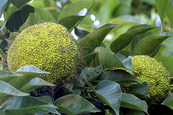 The mackerel, on which the fruit of the Adam's apple grows, belongs to the mulberry family. It reaches a height of 20 m and has a spreading crown. During the flowering period, the tree is decorated with small white flowers. The fruit itself has a round shape, with a diameter of about 15 cm, very similar to an orange. The skin is characterized by a patterned structure. The smell resembles that of a cucumber and the taste is bitter. The fruit contains juice, which is called milky due to its white coloring. Because of its content of toxic substances, it is classified as poisonous.