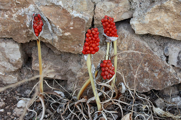 Under favorable climatic conditions, arum flowers mature early, and the fruits spontaneously sow in the spring. As a rule, Arunnikum spotted forms only a single inflorescence, appearing at the same time as the foliage.