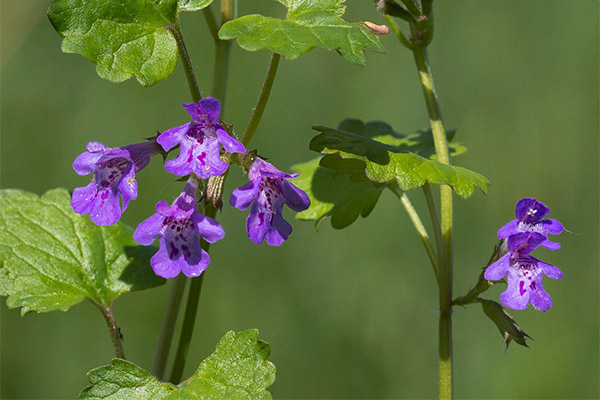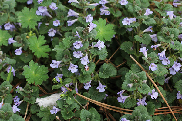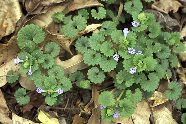 Budra ivy is a perennial plant, the stem of which reaches a height of 60 cm. The stem is tetrahedral, creeping at the bottom, rising to the top. Leaves are small, rounded-cordate shape. Small purple-blue flowers are in the axils of the leaflets above. The crop is characterized by a strong specific fragrance. Blossoms from May until the end of August. Leaves remain green in winter, which allows the herb to be used not only as a medicinal, but also as an ornamental crop.
