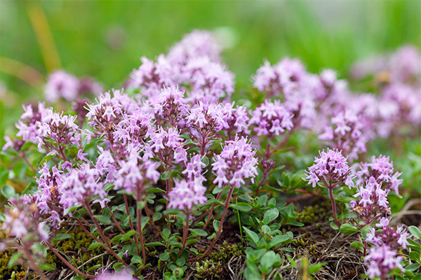 Thyme is collected during its flowering, that is, from the last days of June to the end of July. It is important to collect the raw material in ecologically clean places. The shoots of the plant are cut with scissors. The harvested material is placed in a basket so that it does not crumple. The most suitable time for the collection is early in the morning on a dry and warm day.