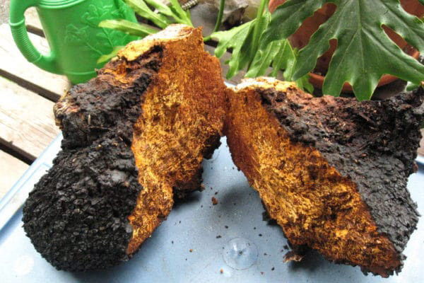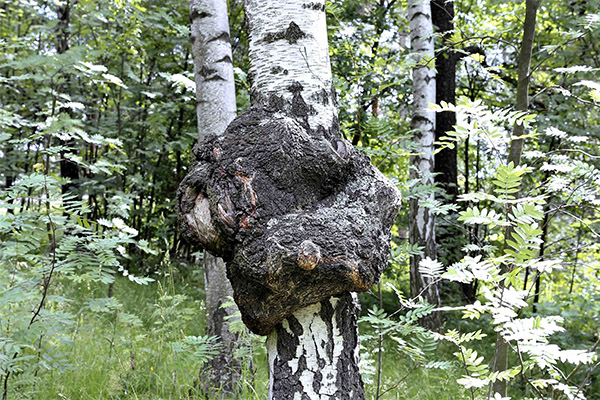 Chaga is a type of mushroom, it belongs to the trutovik family. It forms exclusively on birch trunks, it is also found on mountain ash, alder and aspen. In appearance, it is a dark-colored outgrowth. To the touch, it is hard, has an uneven surface that is covered with veins and cracks.
