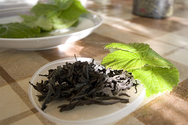 - Dried currant leaves need to be crushed and placed in a teapot.