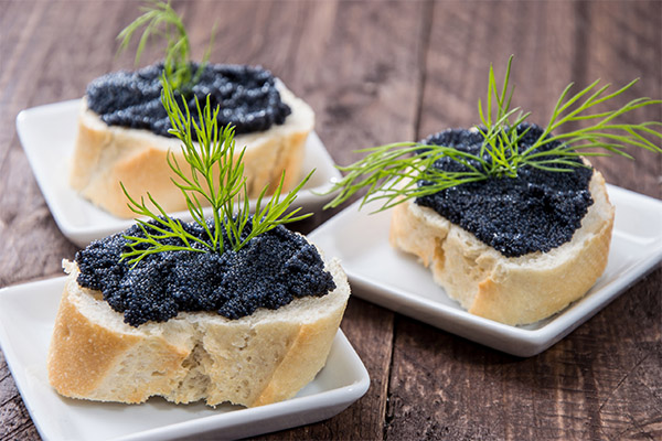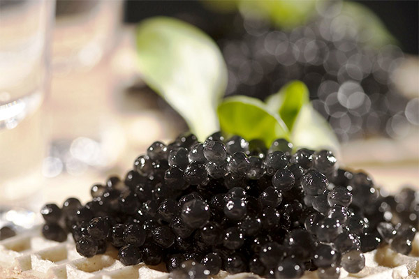 Black caviar is recommended for people with a tendency to cardiovascular disease. Omega acids in the product protect against the development of tumors. A positive effect on the organs of vision is noted. In addition, caviar promotes the synthesis of testosterone and serotonin.