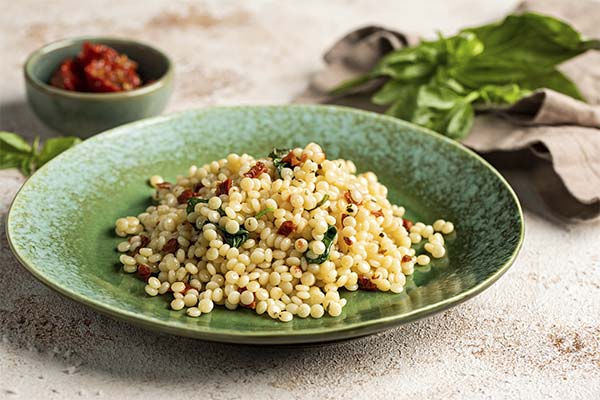 Israeli pasta should be present in the diet of men engaged in physical work, active professional activities, sports. After all, it satiates and satisfies hunger for a long time. Dishes with the addition of meat, butter, cheese or cream have a high caloric value, which is important in the diet of active men.