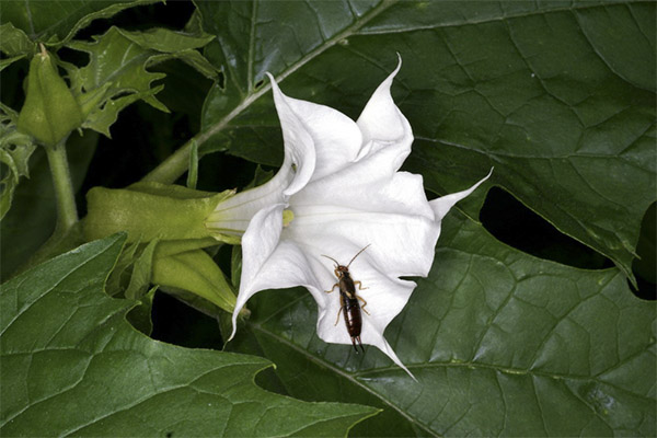 The flowers of datura are large, for which the plant of ornamental varieties and popular with gardeners, are funnel-shaped. The petals are pointed. White flowers are formed one at a time. But the duration of their flowering is short. Also a peculiarity of the grass is that the flowers bloom in the evening. During the day they are closed.