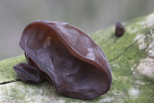 This black woody mushroom is thin and fragile, similar to oyster mushrooms. At first glance, it looks as if it has charred paper or abalone in front of it. Auricularia auricularis grows close to the tree, as its stalk is short. The stiff flesh is very thin and translucent. The mushroom is rough on the outside and smooth on the inside. It is up to 10 centimeters in size. As it dries, it slightly decreases in size and hardens. The spores are white and ellipse-shaped.