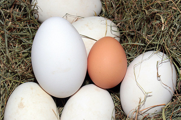If we talk about goose eggs, they differ from chicken eggs, at first glance, in size (they are 3-4 times larger). Secondly, they are denser and unlike chicken eggs, goose eggs contain more nutrients for the body.