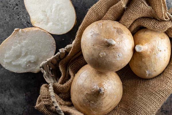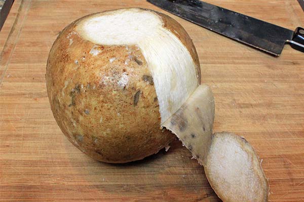 Depending on the variety, the skin of the vegetable may be light yellow, pink-brown or gray. It is peeled off before cooking.