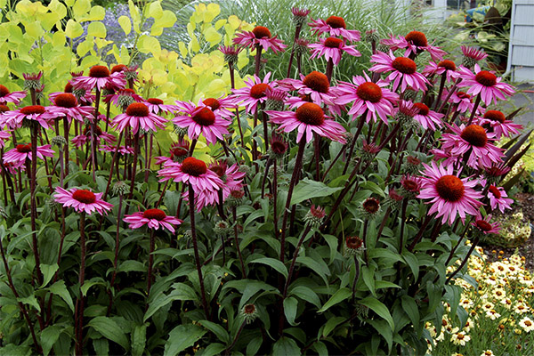 Although Echinacea is native to North America, today it is grown throughout Eurasia. There are several species of it, but each is an herbaceous perennial. The average height of a straight stem - 50-100 cm, although there are varieties up to 150 cm in height. The rhizome of the plant is taprooted, short but strong, with numerous lateral roots, quite fleshy.