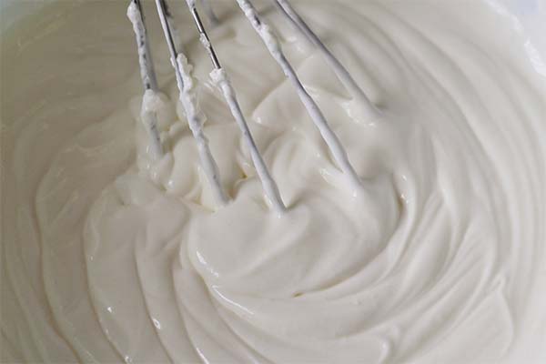 First the sour cream is whipped. To it add powdered sugar mixed with store-bought powder. Continue cooking until the mass thickens.