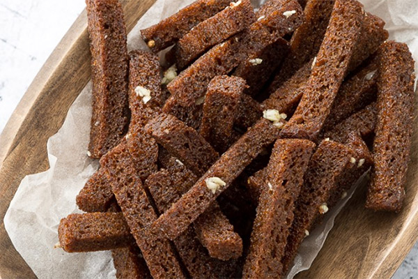 Another option for an ideal snack is the preparation of breadcrumbs from black bread. In this case, you need to prepare 700 g of black bread and salt and spices to taste.