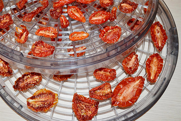 Whatever method of drying tomatoes the hostess has chosen - with the use of the oven, electric devices or just in the fresh air, it is important to spread them on trays or trays that will not succumb to the acids emitted by these vegetables. For this reason, aluminum trays should never be used.