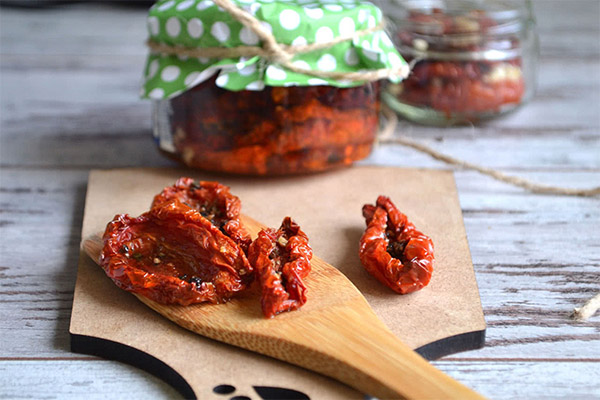 Some people may not like the appearance of dried tomatoes. But despite the appearance, they remain tasty and retain the full range of useful substances contained in fresh vegetables. Moreover, per unit weight, the amount of such substances increases, as excess water is evaporated. As a result, the product becomes more concentrated.