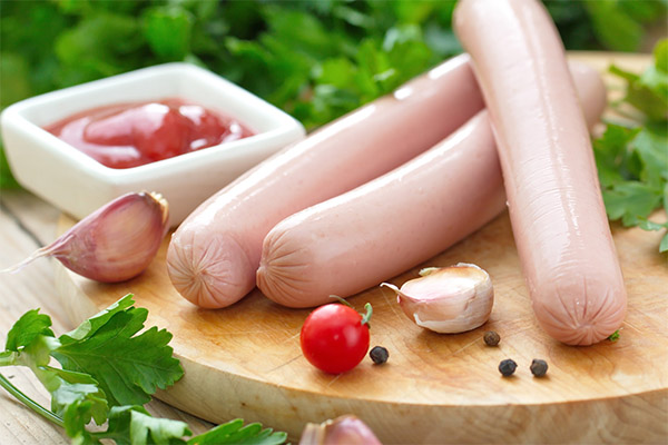 Sausages differ from bratwurst in that the former can be eaten without heat treatment, as boiled minced meat is used in their production. Despite this, this meat product can be subjected to boiling, frying, stewing, used as an ingredient in the preparation of salads and various casseroles or as a separate side dish, to include in various mincemeat. There are some dishes in which this ingredient can not be replaced by others. These include hot dogs, sausages in dough and corn dogs.