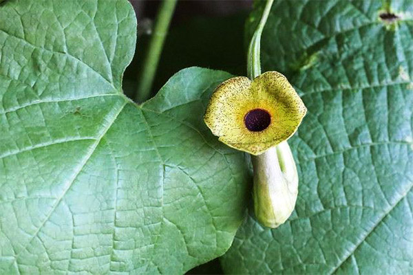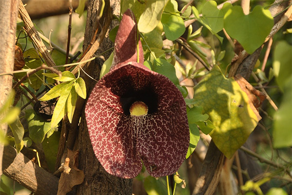 - Curled Kirkazon. The length of the herbaceous liana can reach 1 m. The root, unlike other species, is small and rounded. The bark exudes a pungent odor and is colored yellow. The leaf is not very large, about 3-7 cm long, slightly elongated triangular-cordate in shape. Flowers are small, branched. The fruit has a pronounced oval shape. Seasonal flowering time falls in July and August. Roots and fruits are used for medicinal purposes. Particularly popular in Chinese and Korean medicine, the fruit of this species is called "maduren" in China. The main place of growth is in the Far East. Usually grows in thickets, not far from water bodies.