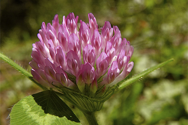Meadow clover is a whole group of plants. Most species are perennials, although biennials can also be found. This plant reaches a height of 15-55 cm. It is characterized by a rather powerful branched stem and characteristic trifoliate leaves. The latter consist of elliptical-shaped plates, solid along the edges, with a white pattern on their upper side in most cases. In many species leaves are folded at night. The tap root of the plant looks interesting. It is most often strongly branched and its offshoots bear nodules, which are nitrogen-absorbing bacterial cultures.