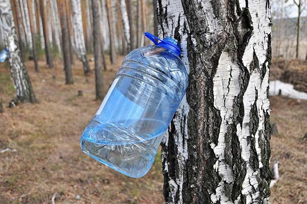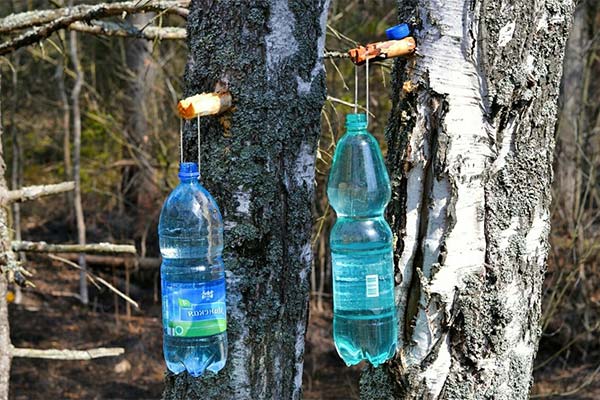 For this method you will need a cocktail straw, a drill, a bottle of 1-2 liters, and a rope for fixing. In the lid you should make a hole equal to the diameter of the tube. The same hole, 1-2 cm deep, should be made on the trunk of the birch. It is necessary to drill the hole at the height of 1-2 m. The tube is inserted with one end into the trunk, with the other end it is lowered through the cap into the bottle. Using rope or wire securely fix the container. It is important that air can flow into the bottle. To do this, leave the lid half open or make an additional hole in it.