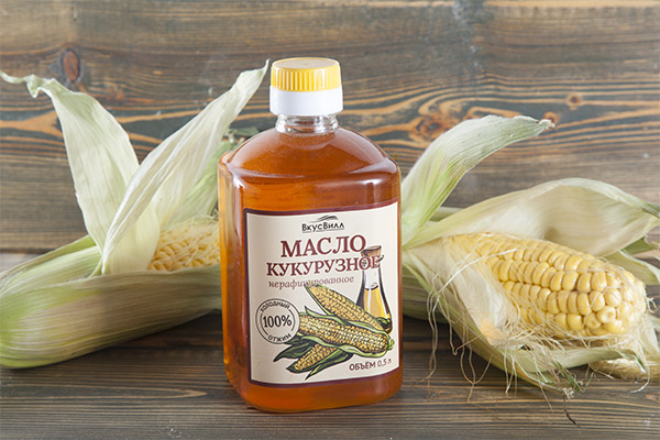 Two kinds of corn oil are consumed in food: unrefined, which is the most useful for the body and is used even for medicinal purposes, and refined deodorized, in which the threshold of smokiness is increased.