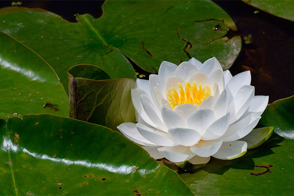 Folk healers use the rhizomes and flowers of white water lily for preparing medicinal compositions, and each form of medicine has a specific purpose. Thus, from the flowers are prepared decoctions, which are used as an aid in the treatment of jaundice, as well as a laxative. Infusion of petals is struggling with insomnia, it is used to alleviate fever. Decoction of the rhizome heals the kidneys and bladder, uses it for rapid healing of festered scratches and wounds, as well as a therapeutic and preventive agent against hair loss.