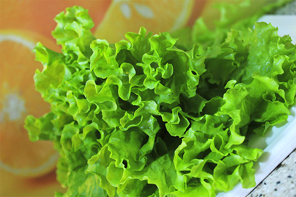 This product is considered dietary because of its low caloric content: 100 g of fresh leaves contains only 15 kilocalories. For this reason, leaf lettuce can stabilize blood sugar levels and serve as a preventive against obesity. It has a high concentration of ascorbic acid, which makes it an excellent antioxidant and slows the aging process of cells. Most often leaf lettuce is used in its raw form, added to vegetable salads, cold snacks and all kinds of side dishes.