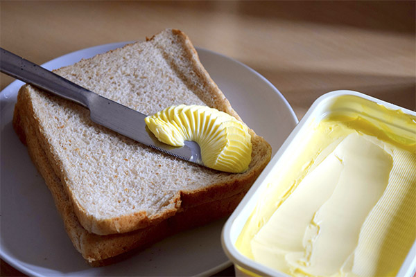 Margarine is an alternative to butter. As already mentioned, for the manufacture of butter, animal fats are used, while margarine is characterized by the presence of vegetable fats, which become liquid at room temperature. In order for the vegetable oils in margarine to become thick, they are processed and hydrogenated. Although margarine has less saturated fat compared to butter, it is hydrogenated with trans fats. Trans-fats are chemically created substances that have similar properties to saturated fats. This makes margarine dense and lasts longer. However, such substances contribute to the reduction of good cholesterol, which leads to the risk of cardiovascular diseases.