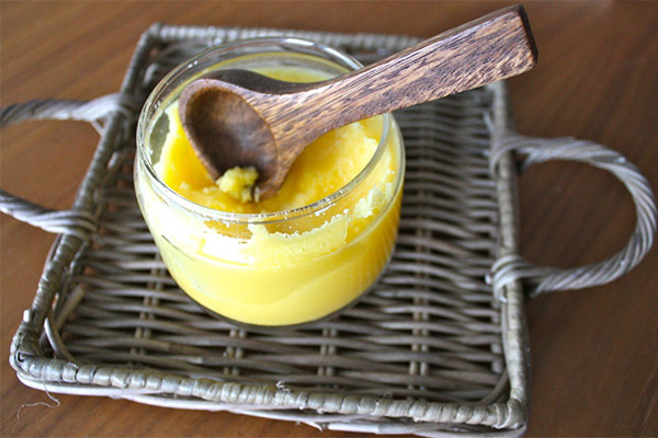 To prepare ghee, the oven should be heated to 150 degrees Celsius and the pan with the butter should be placed there. For three packets of butter, it will take about an hour and a half, before the contents of the crock becomes golden and covered with a transparent crust. The resulting product must be carefully strained and poured into a dish for storage.