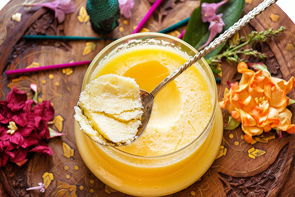 In India and other countries of South Asia, ghee oil is considered a healing product that strengthens the body, eliminates toxins, revitalizes the body, strengthens the spirit, and gives longevity.