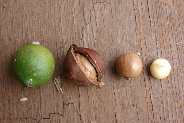 Macadamia contains a wide range of nutrients: carbohydrates, vitamin A, thiamine, riboflavin, niacin and folic acid, as well as magnesium, iron, calcium, zinc and copper. When it comes to acids, Australian walnuts contain oleic acid, linoleic acid, palmitic acid and alpha-linolenic acid. Most of the weight of the nuts are oils, the fruit also contains protein (9.0%), carbohydrates (9.3%), water (1.5%), minerals (1.6%) and fiber (2.0%).