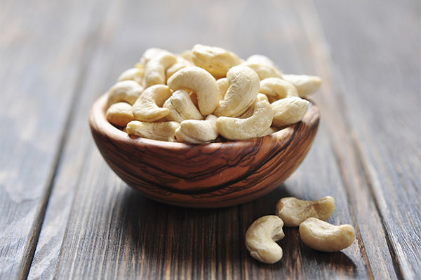 The caloric value of cashew nuts is 600 kcal/100 grams, and the B/L/D ratio is 18.5/48.5/22.5. As you can see, the energy value is achieved at the expense of carbohydrates, so it is recommended to use cashews as a second breakfast or snack. In the evening, it is not recommended to eat high-carbohydrate products, as they are deposited in fat cells. The body does not have time to cope with carbohydrates consumed in the second half of the day, so they "take root" in the body in the form of slags and extra pounds.