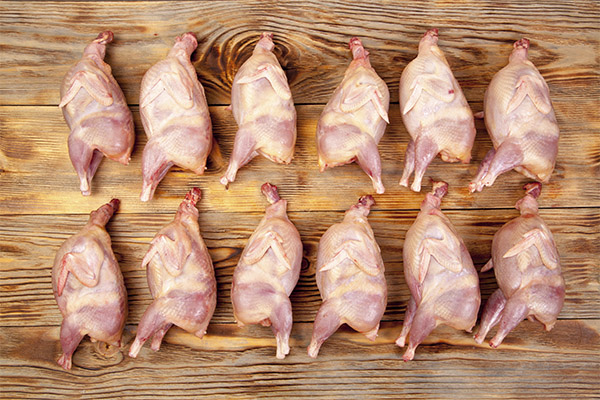 Low fat and calories allow to assign this product in the category of recommended in various diets. Easy digestibility only increases the value of quail meat, especially for diseases of the digestive system.