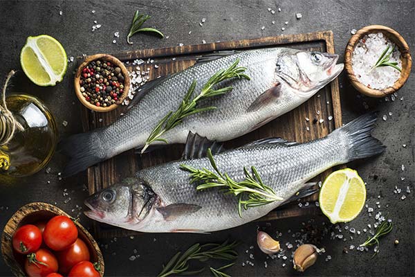 Sea bass meat is rich in proteins, cobalamin, vitamins D, PP, chromium, iodine, phosphorus. The fish contains unsaturated fatty acids Omega-3, which prevent diabetes.
