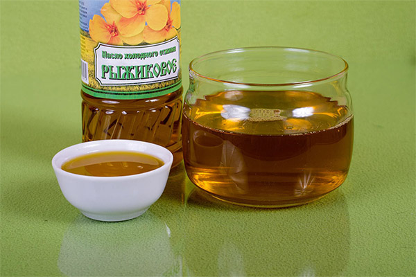 This oil is extracted from the seeds of this crop themselves, they give it a spicy taste with a slight bitterness. Natural unrefined oil is distinguished by a transparent golden color, very clear, not clouded with sediment. This color gives to understand that the oil is obtained by special pressing or pressing, this process is called "cold kind". Thanks to this process, the entire biochemical composition of the product, which is incredibly valuable for the human body, is preserved. If the product goes through heat treatment with double-pressing, you get refined oil, it loses an impressive percentage of useful elements, acquiring a cloudy green-brown hue, by which it is easy to recognize.