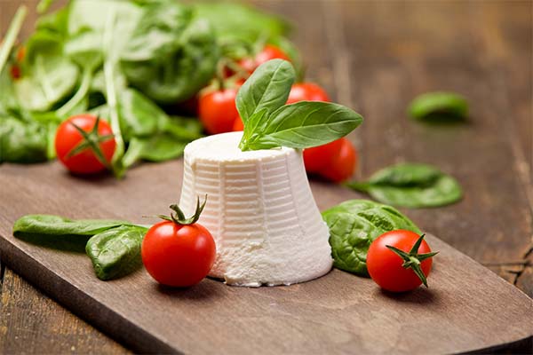 Ricotta most often consists of milk or cream and whey. It also uses citric acid, which acts as an acidity regulator. Ricotta is rich in vitamins A and B as well as calcium and phosphorus, which help strengthen the bones.