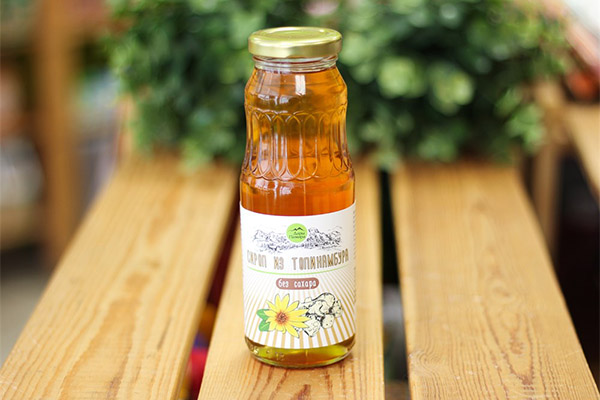 Topinambour syrup may contain directly the juice of the tuber, lemon juice and water. Therefore, when buying, you should carefully read the composition, except for the listed components, it should not contain anything!